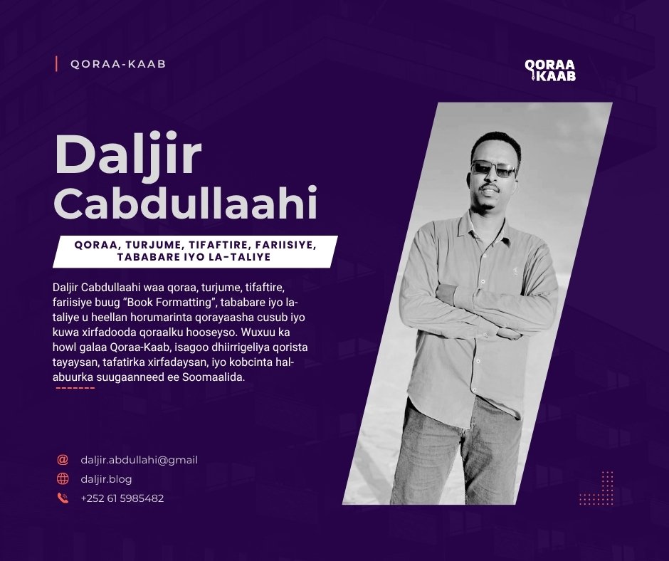 Tifaftiruhu waa daawada khaladka, indhaha qoraaga, iyo codka akhristaha. Qoraaga xirfadlaha ahi kama baqo tifaftirka—wuu soo dhoweeyaa. Haddii qoraalkaagu u adkeysan karo tifaftir adag, wuxuu diyaar u yahay inuu noqdo buug rasmi ah.